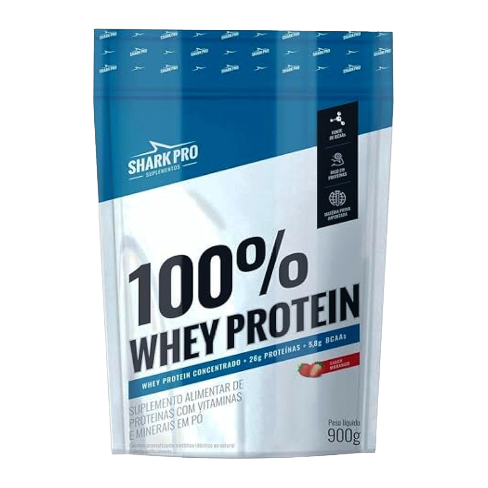 100% WHEY PROTEIN REFIL 900G - CHOCOLATE. Produto da marca SHARK PRO.
